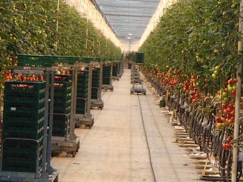 De trostomaten worden in de kas geteeld en in de schuur verzendklaar gemaakt.