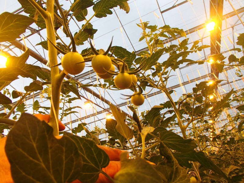 De trostomaten kunnen met behulp van groeilicht zelfs jaarrond geteeld worden.