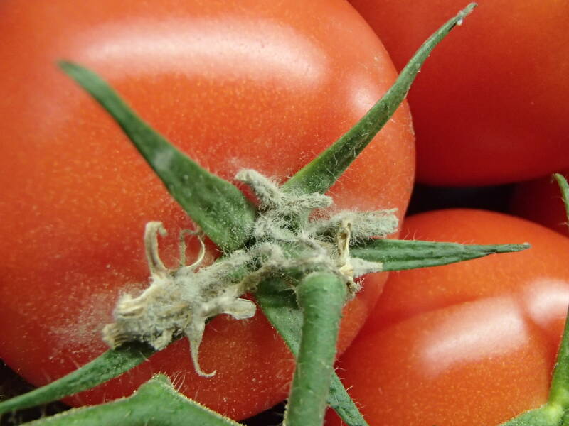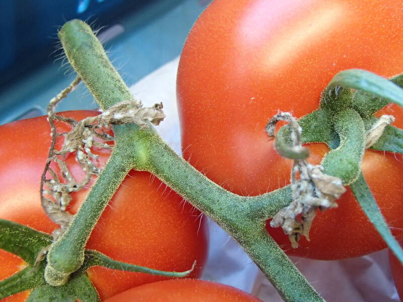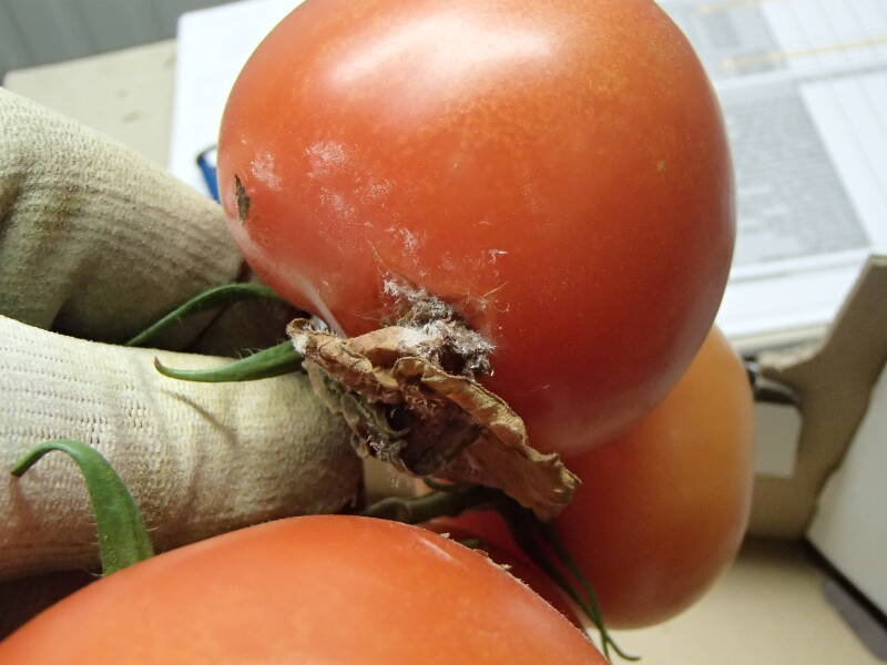 Het kan voorkomen dat er, tijdens de diverse werkzaamheden in de kas, verschillende plantresten achterblijven in de trossen.